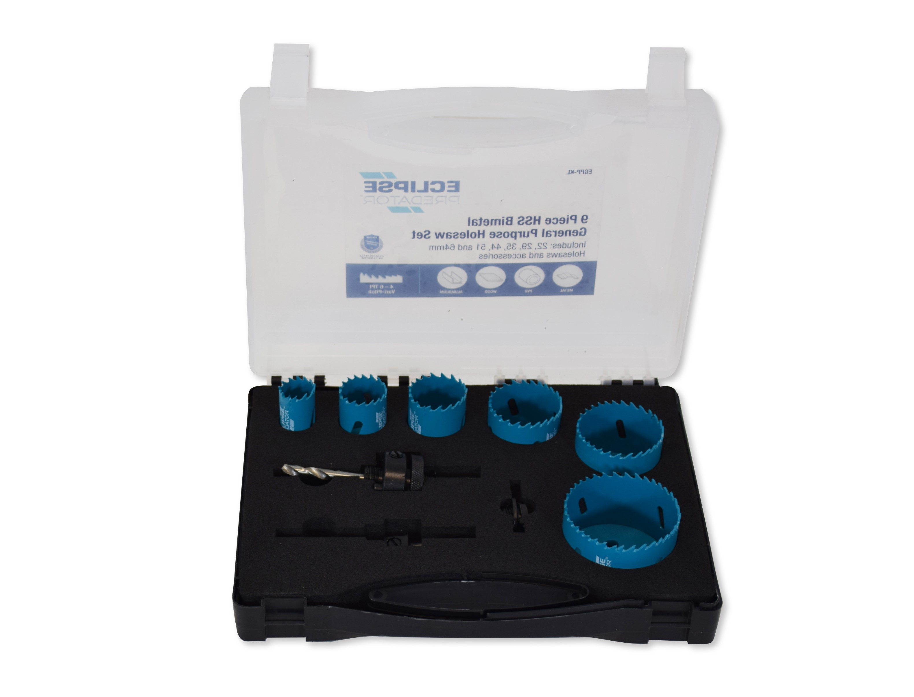 A general purpose holsesaw kit for superb cutting performance when working with woods, metals, and plastics