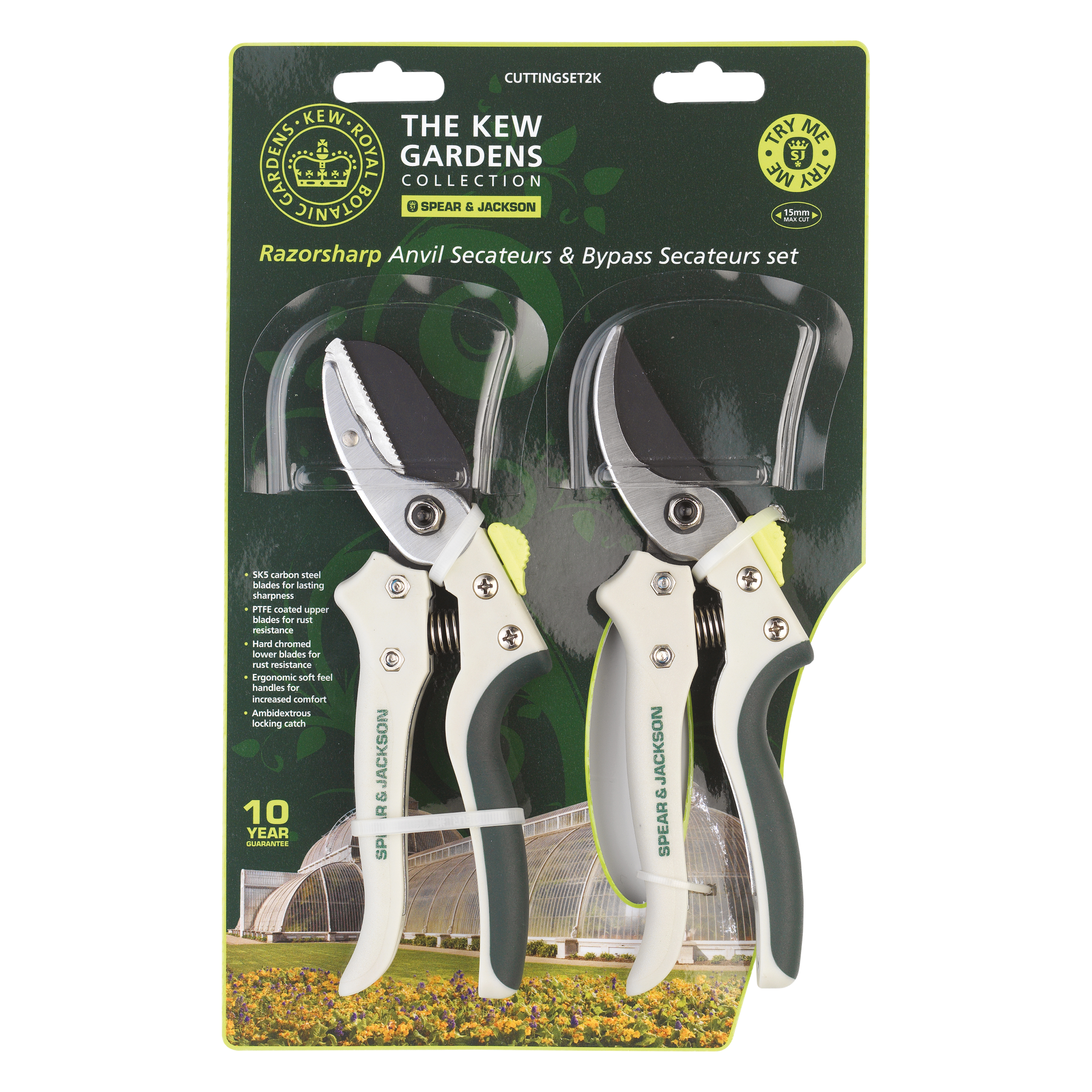 This set contains Ratchet anvil secateurs (7158KEW) and Bypass secateurs (7159KEW)suitable for a wide range of pruning tasks