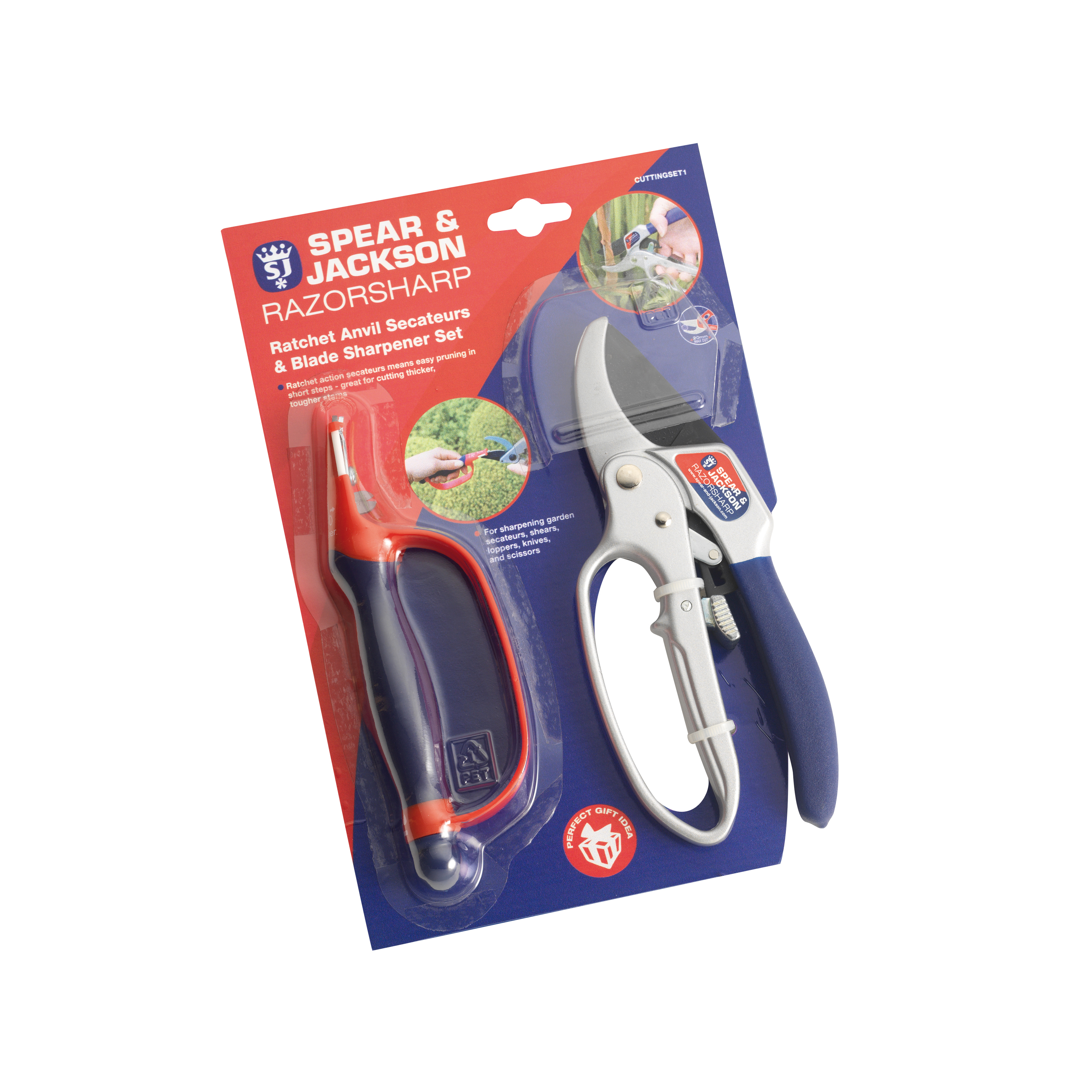 Ratchet Anvil Secateurs and Blade Sharpener Set