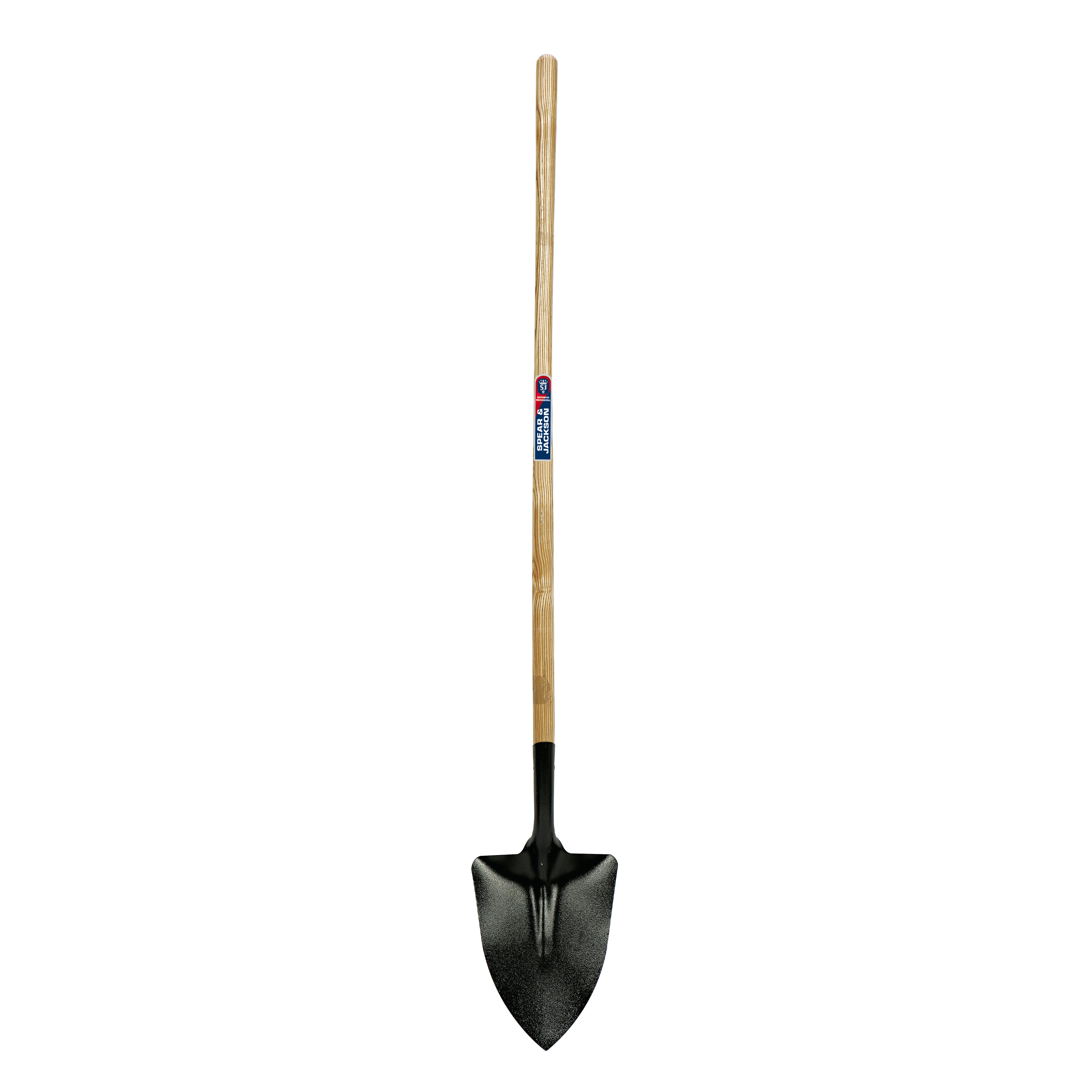 A digging shovel with pointed blade for easier penetration into the ground